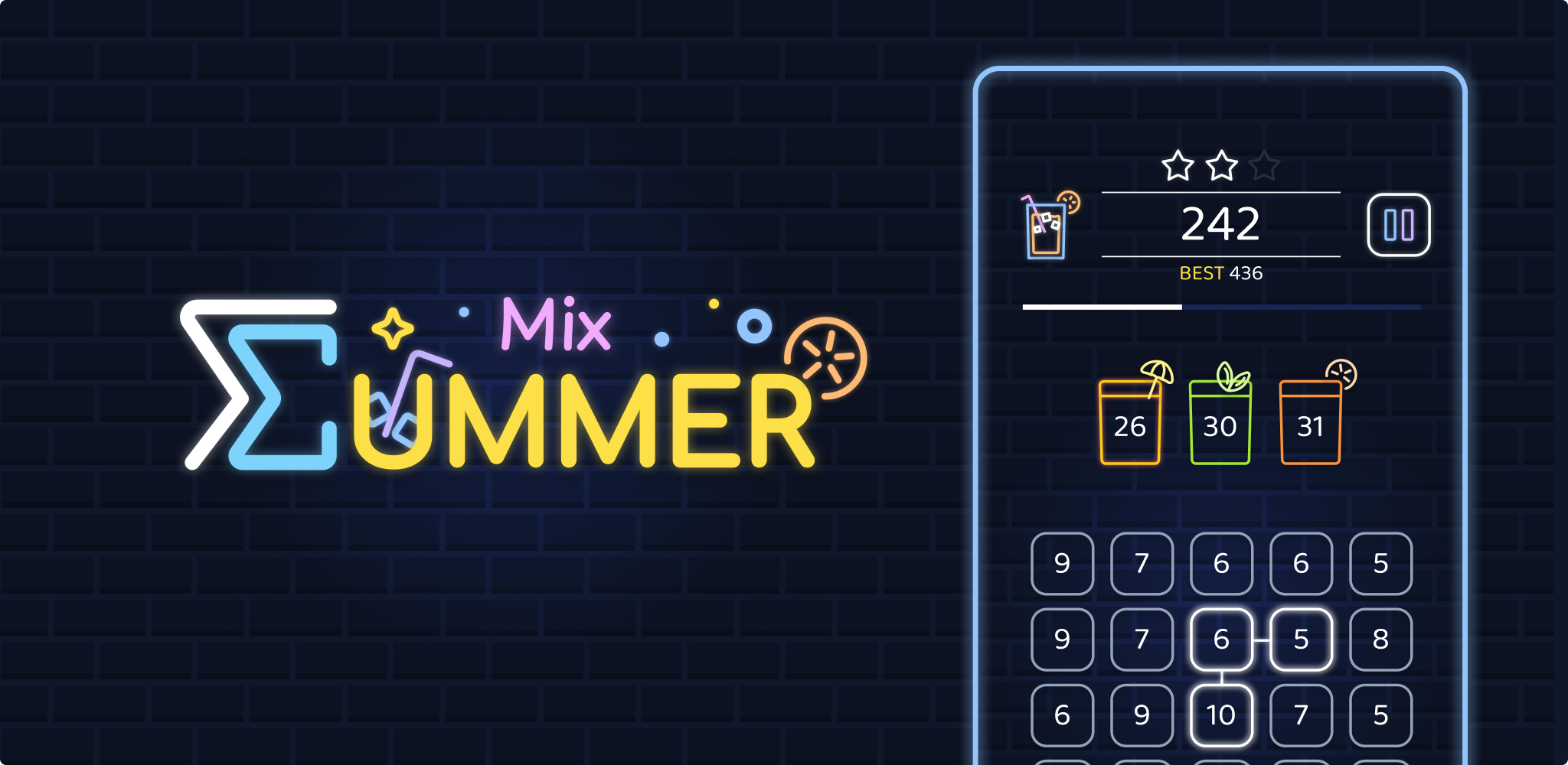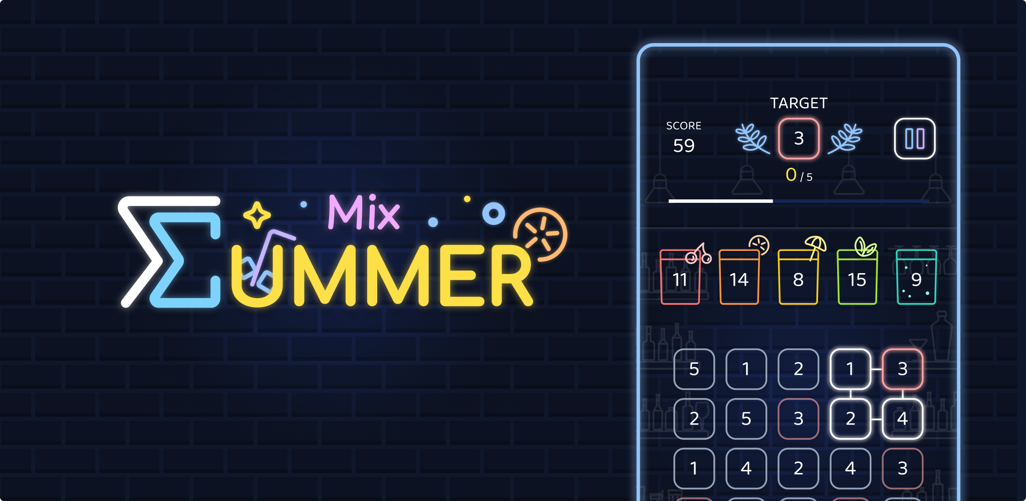A refreshing summer puzzle game mixing numbers and cocktails!